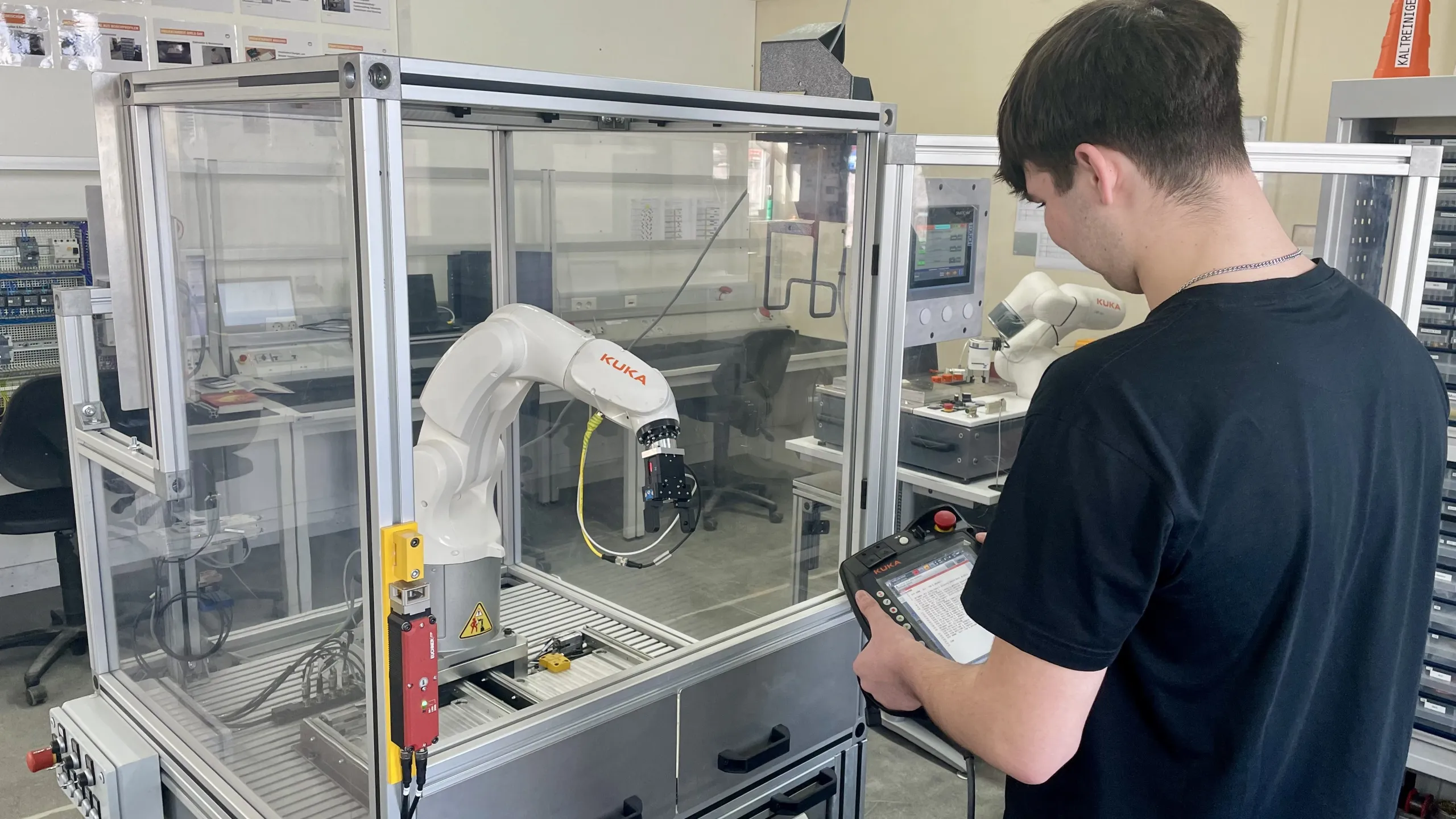 Im Jahr 2012 ist die neue Lehrwerkstatt eröffnet worden mit großen hellen Räumen und maßgeschneiderter Ausstattung. Deine Ausbildung besteht aus drei Komponenten: der Ausbildung in der Berufsschule, dem Grundlehrgang in der Lehrwerkstatt und die Spezialisierung im Betrieb selbst. Anders ausgedrückt, ist das eine Verzahnung von Theorie und Praxis mit dem “Training on the Job”. Ein hochmoderner Ausbildungsbetrieb und Kollegen, die Spaß an der Arbeit haben, erwarten dich.